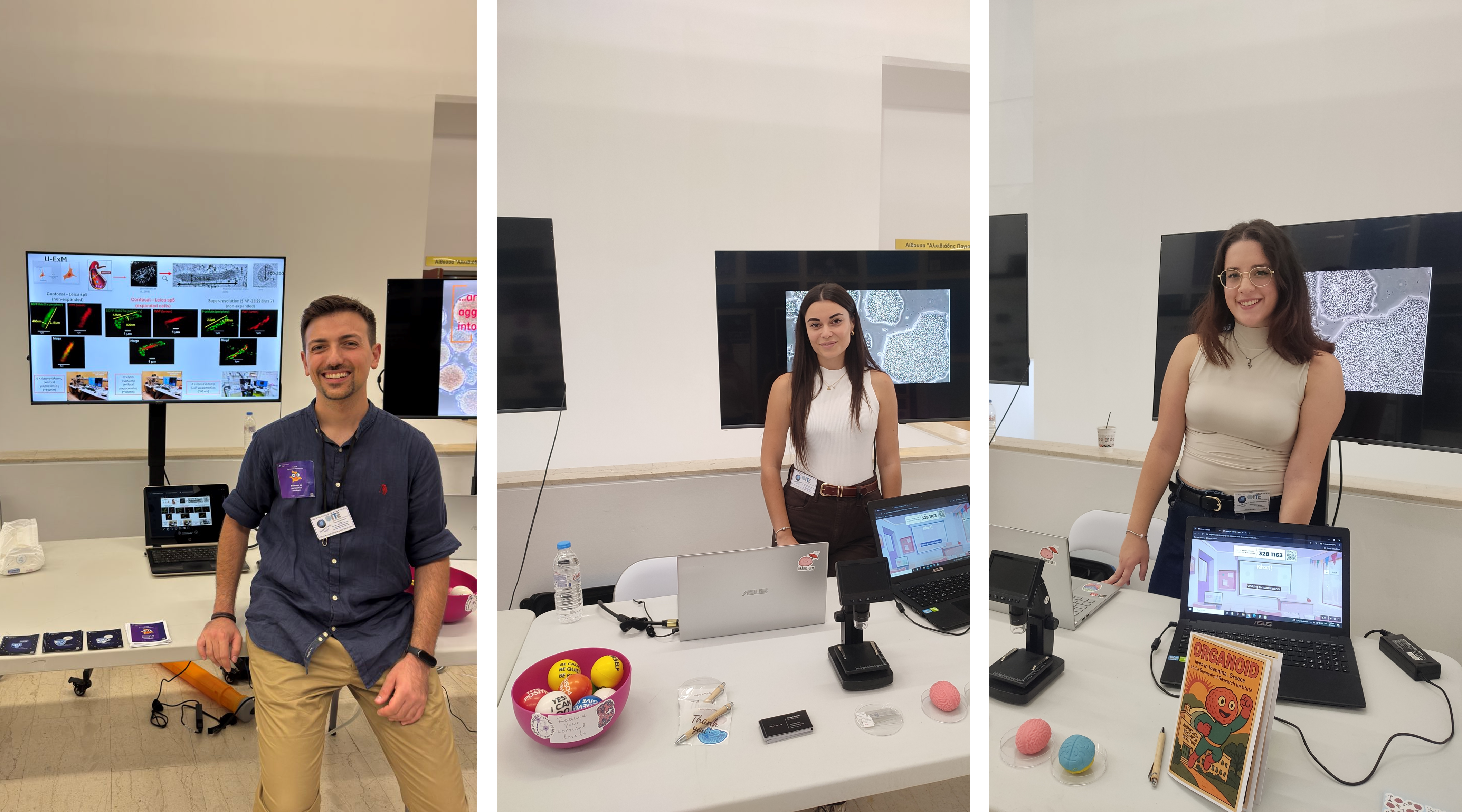 «Το αόρατο γίνεται ορατό» – Τεχνική Ultrastructure Expansion Microscopy (U-ExM): Οι επισκέπτες γνώρισαν πώς βιολογικά δείγματα «φουσκώνουν» έως και 4 φορές, ώστε απλές μικροσκοπικές εικόνες να μετατρέπονται σε υψηλής ευκρίνειας αναπαραστάσεις της εσωτερικής αρχιτεκτονικής των κυττάρων. Το έκθεμα συνδύασε εικόνες U-ExM με έναν διαδραστικό και χιουμοριστικό χώρο εξερεύνησης.